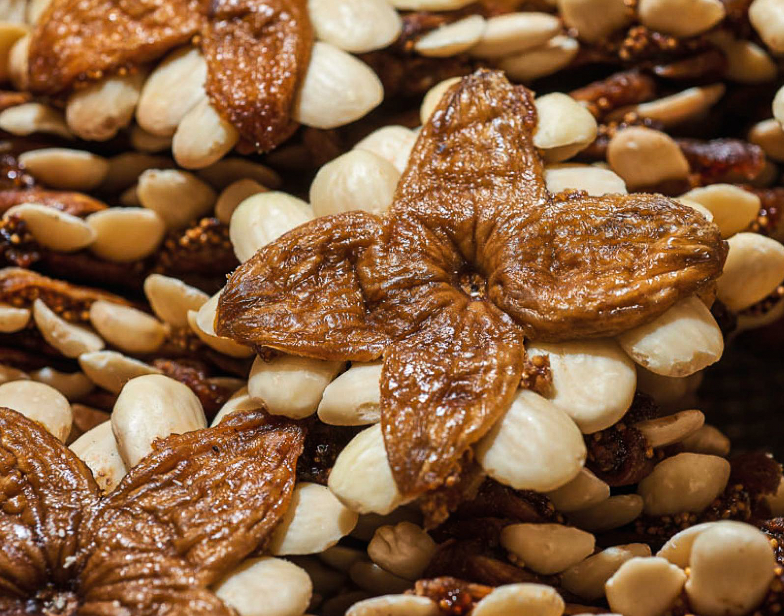 This is a typical Algarve snack. The stars are made all year round made from dried figs and roasted almonds in the oven. Delicious, simple to perform, perfect to accompany with a good glass of Mediterranean Medronho or liquor.