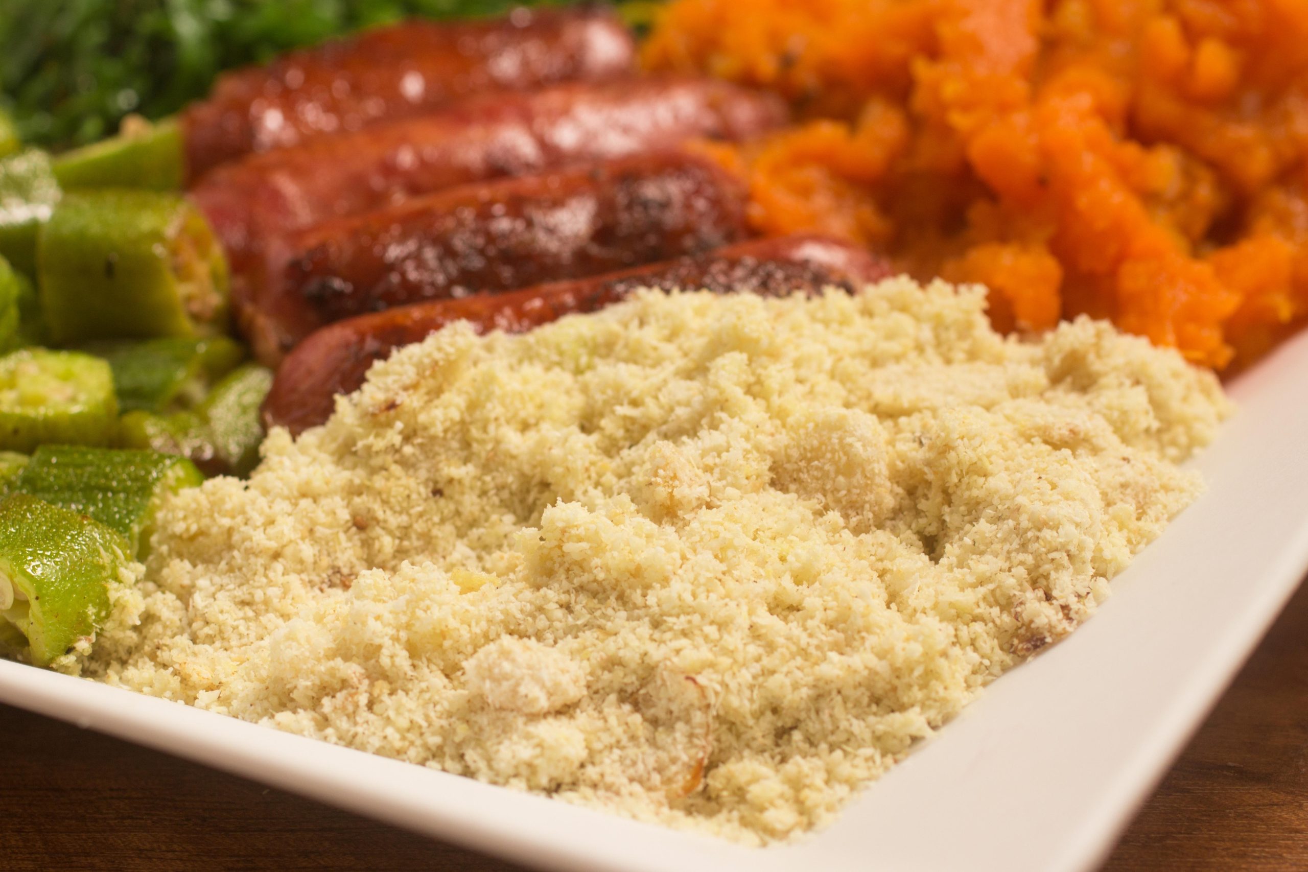 Wat is farofa ? Farofa wordt meestal gemaakt van cassavemeel dat wordt gebakken met boter of olie, waardoor het een knapperige en kruimelige structuur krijgt. Maar hier komt het interessante deel: Farofa kan worden verrijkt met allerlei ingrediënten zoals spek, ui, knoflook, eieren, noten, gedroogd fruit en zelfs banaan! Dit geeft Farofa een unieke smaak die kan variëren van hartig tot zoet, afhankelijk van de gebruikte ingrediënten.