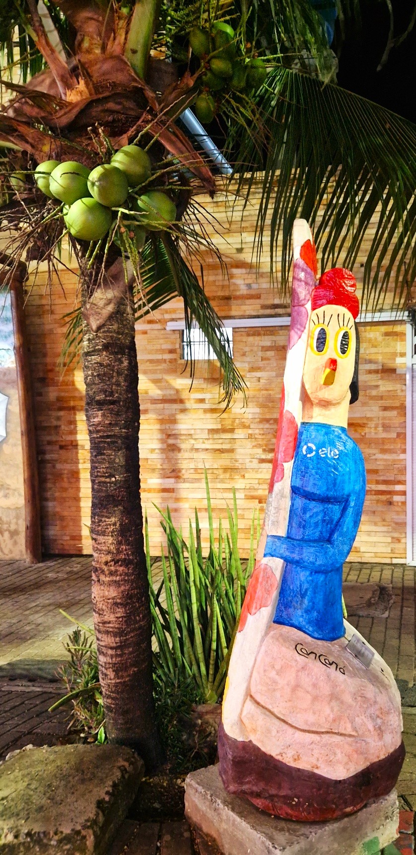 De kip is dan ook niet meer uit het straatbeeld weg te denken. Porto de Galinhas is niet zomaar een strandbestemming; het is een plek waar kippen de show stelen en een glimlach op je gezicht toveren😄 Van hun grappige beelden in het gezellige centrum tot unieke souvenirs, deze pluizige bewoners maken deze plek echt uniek. Je zult nergens zoveel (artistieke) kippen bij elkaar vinden als hier. De grote exemplaren op de foto´s hieronder zijn gemaakt van de onderkant van omgewaaide kokospalmen.
