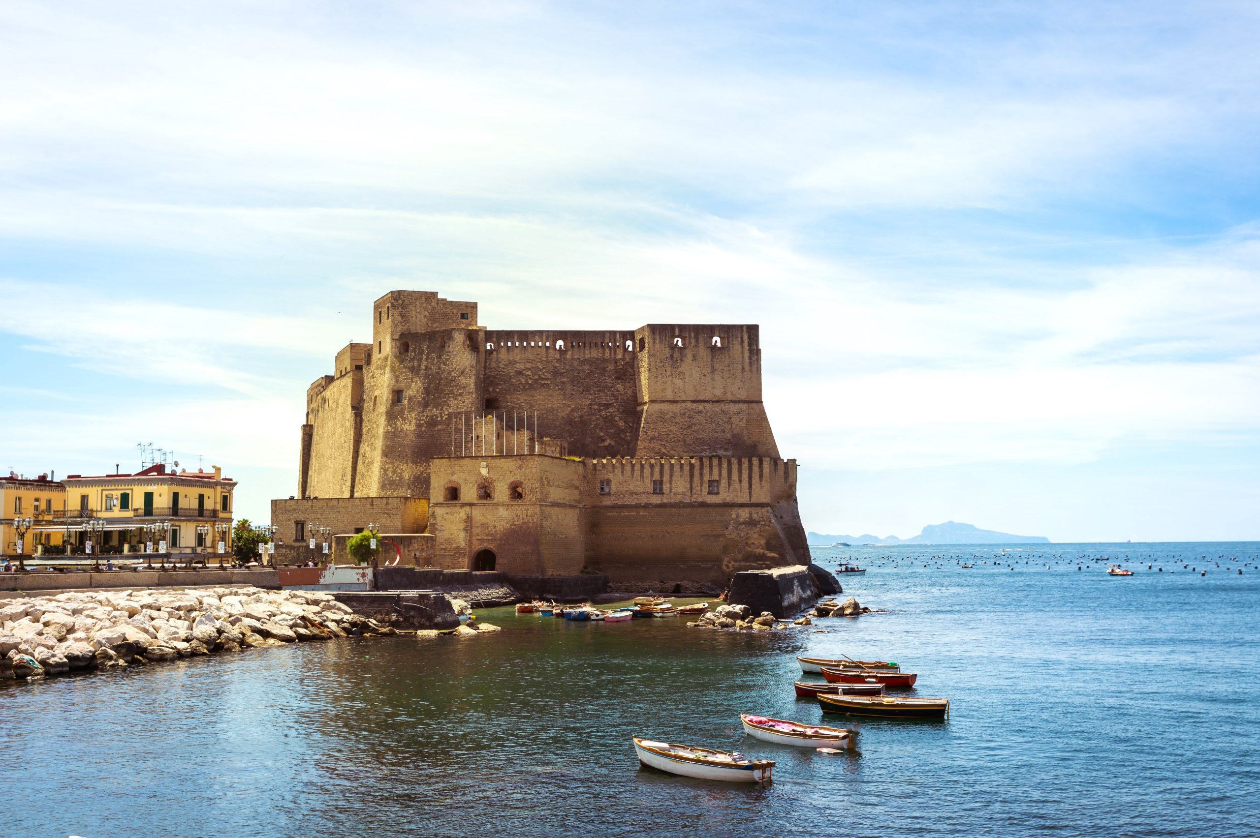Nou het is mij weer gelukt hoor, dit artikel wordt echt weer te lang en voordat ik jullie helemaal begin te vervelen brei ik er langzamerhand een einde aan. Ter afsluiting laat ik jullie nog de twee kastelen die de waterkant van Napoli sieren zien. Eerlijk is eerlijk, ik heb zowel het Castel Nuovo als het Castel dell’Ovo alleen van de buitenkant bewonderd want het was prachtig weer dus ik wilde graag buiten zijn. En terwijl ik het Castel Nuovo bewonder vanuit het park, doe ik mij te goed aan een overheerlijk Arancino. Deze met rijst en ragout gevulde “ballen” zijn echt een heerlijke versnapering die van origine uit Sicilië komen.