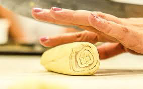 Roll up the puff pastry and cut it into 10 slices of 1.5 to 2 cm wide.