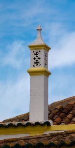Portuguese chimney on a brown tile roof