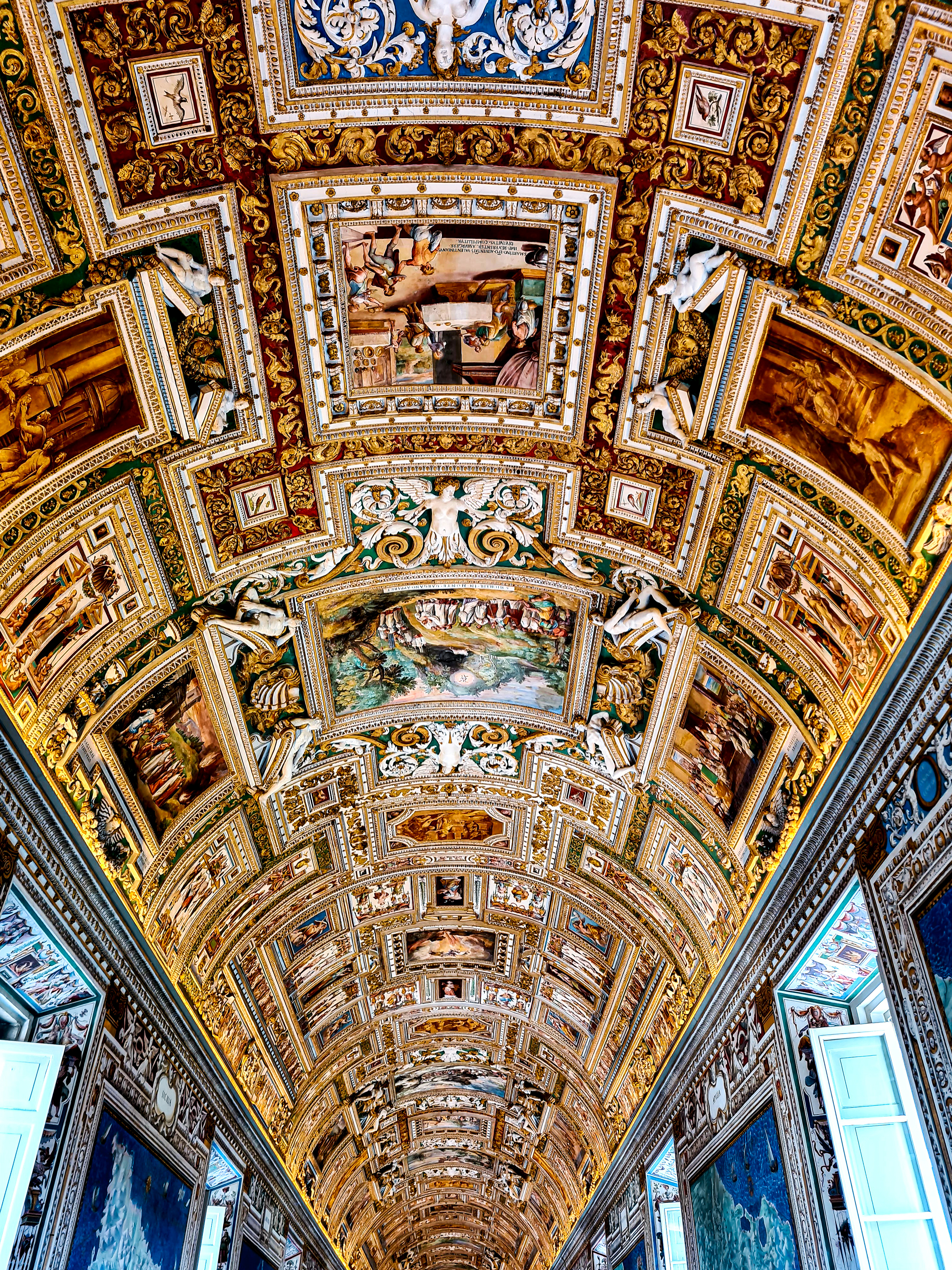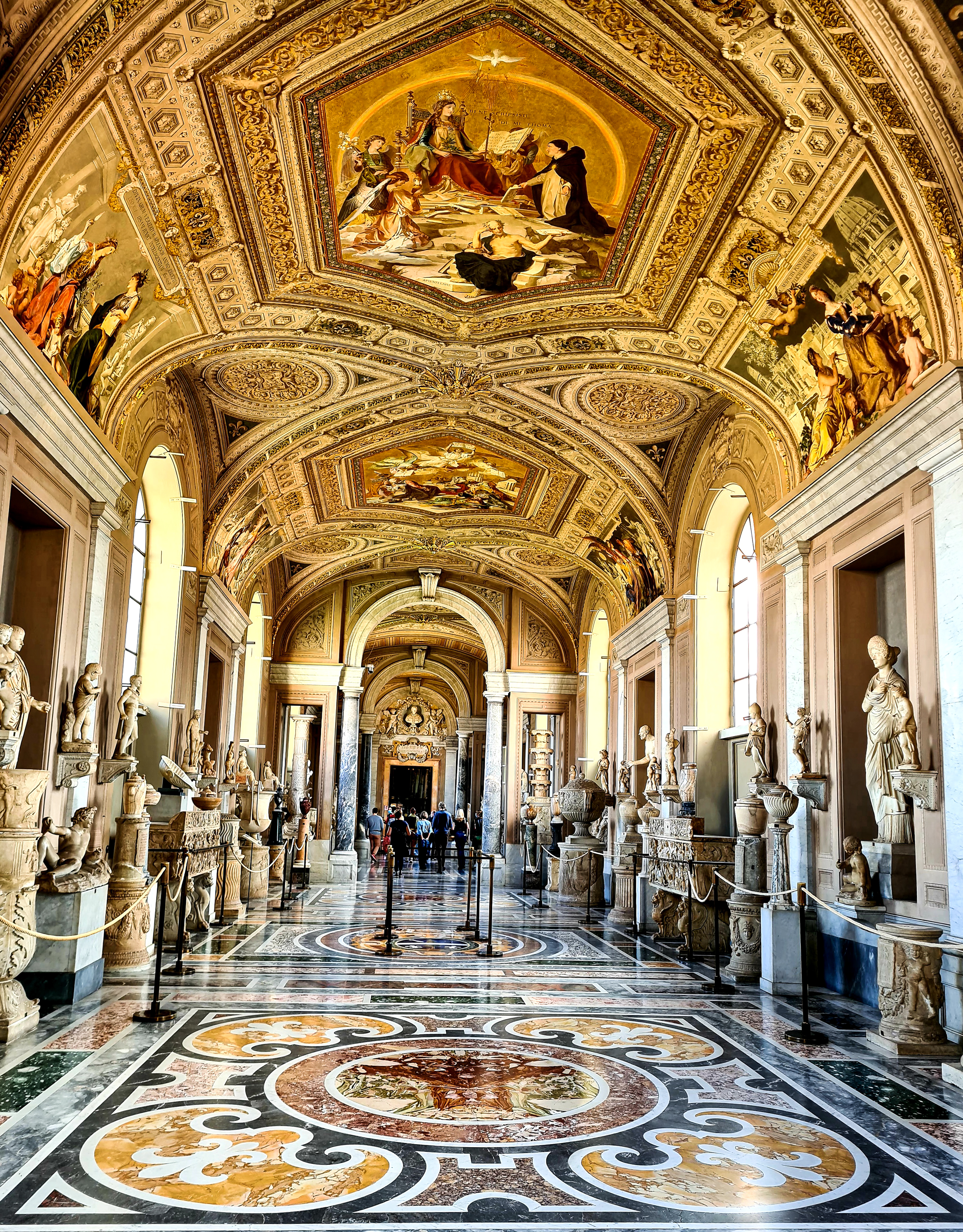 The distance from St. Peter’s Square to the Musei Vaticani turns out to be a bit further than expected and by the time I get to the museum I am overheated again! (no, no, this has nothing to do with menopause ………) This museum is enormous and I will have to walk through all the rooms because the purpose of this trip, the “Sistine Chapel”, is at the end. Believe me, this is not a punishment